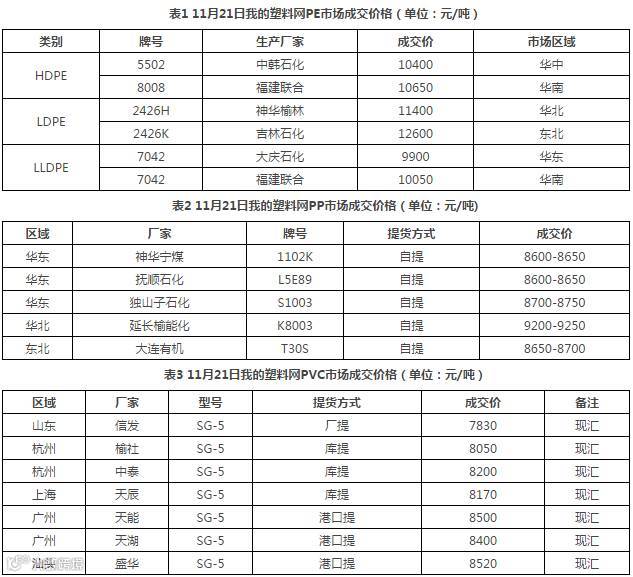 今日塑料市场延续下跌格局,PP、PE、PVC价格各有不同程度的下调。塑料期货低位运行为主,PP、PE回调后反弹,PVC延续下跌行情。现货市场成交惨淡,部分市场出现倒挂现象。