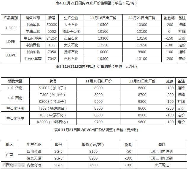 PE:今天国内PE价格下滑明显,高压和线性石化出厂价下调100-200元/吨,低压石化出厂价窄幅调整为主。线性期货低开震荡上行,但石化下调出厂价,商家跟跌出货为主,终端刚需采购,谨慎观望居多。