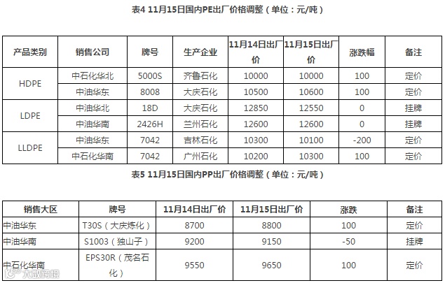 利空因素:石化下调部分牌号出厂价;下游补仓意愿不强。