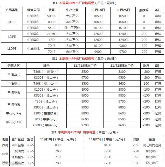 出厂价格调整