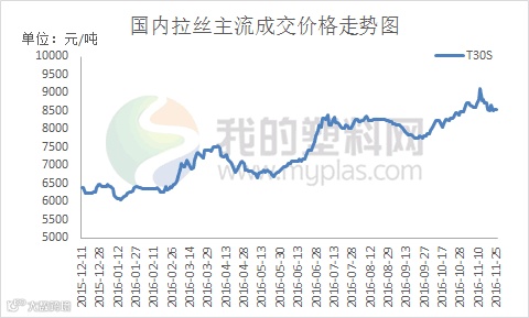 周国内PP成交价格震荡走低。截止本周五拉丝主流价格在8400-8700元/吨,高端价格较上周五走低100元/吨左右。