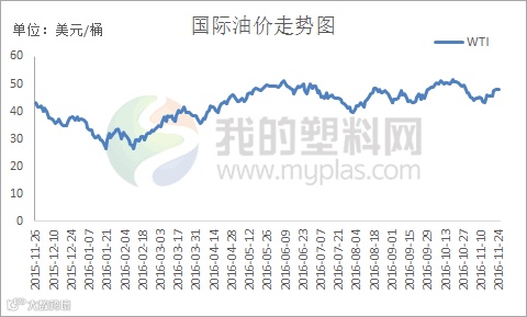 本周国际原油价格继续上行,限产预期和美元是主要影响因素。截至11月23日收盘,WTI区间45.42-48.95,布伦特46.49-49.12美元/桶。