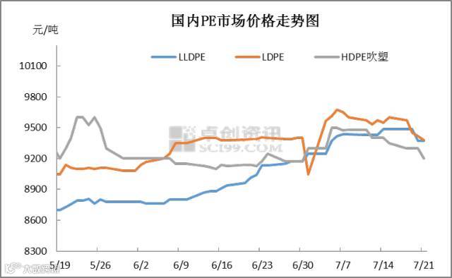 周初,线性期货连续低开走弱,周中虽止跌反弹,但对市场支撑暂不明显。同时石化企业频繁下调出厂价,市场缺乏成本支撑,商家跟跌出货为主。当前线性主流价格在8700-9200元/吨,环比跌300元/吨;高压主流价格在9200-9800元/吨,环比跌300元/吨左右;低压各品种价格继续走软,环比跌100-150元/吨。终端需求疲软,补仓意向不高,实盘成交欠佳。