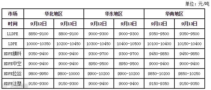近期除高压因货少,价格高位外,其余产品均呈弱势震荡趋势。目前下游需求虽在稳步推进,但开工仍处低位,刚需采购为主,整体成交情况欠佳。临近中秋假期,预计,明日国内PE市场或将延续震荡,LLDPE价格将维持在8800-9500元/吨。