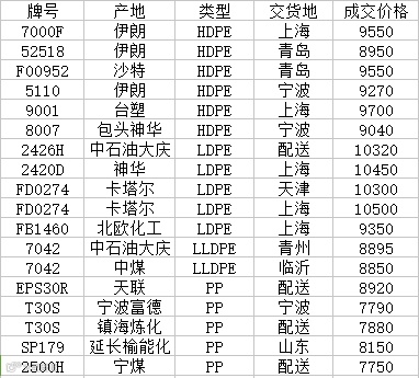 我的塑料网今日部分主流牌号成交价格一览表