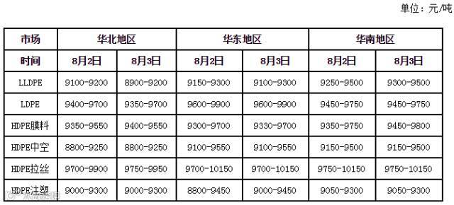 【每日行情】塑料市场今日交易收评0803