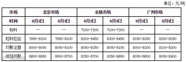 国内主要市场PP价格一览表