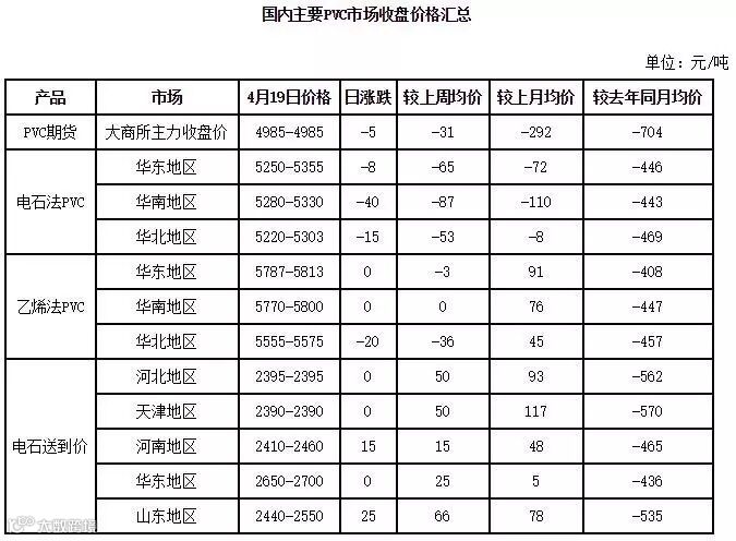 备注:电石法PVC华北地区及乙烯法PVC华东为送到价,PVC其余市场价格均为出库自提价。