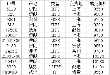 近期石化库存持续低位,暂无压力。线性期货频繁走强,石化受期货拉动,出厂价连续上调,市场价格相应跟涨。但下游接货意向偏弱,多刚需采购为主,实盘成交难有放量。我的塑料网预计,明日国内PE市场或将高位震荡,不排除继续上涨的可能,LLDPE价格将维持在9200-9450元/吨。
