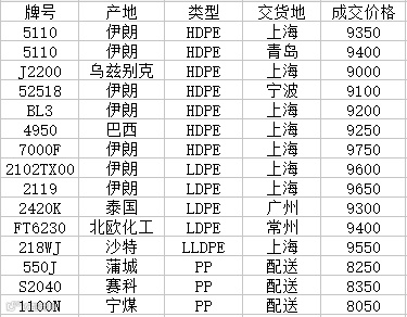 “我的塑料网”今日部分主流牌号成交价格一览表