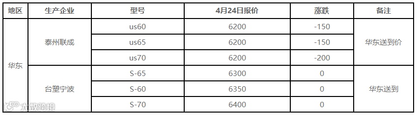 表6 4月24日国内PVC出厂价格调整(单位:元/吨)