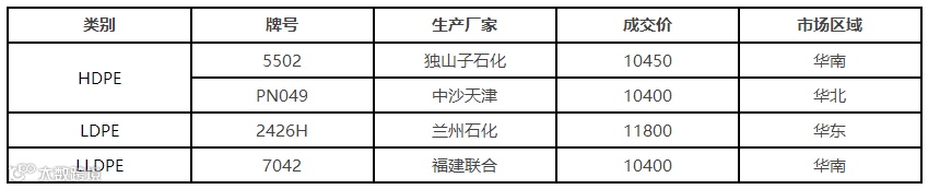 表1 2月7日我的塑料网PE市场成交价格(单位:元/吨)