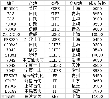 我的塑料网今日部分主流牌号成交价格一览表