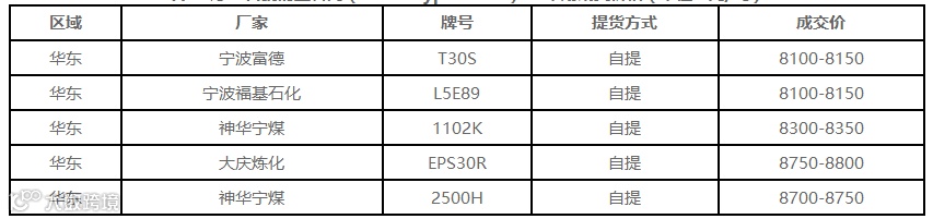 表5 4月10日国内PP出厂价格调整(单位:元/吨)