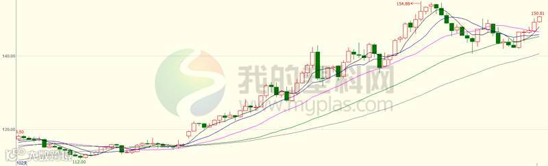 本周国内化工板块持续走高,收取5连阳。周初开盘在142.34,周五收盘在149.37,较上周涨7.03或4.94%。最高150.81,最低142.08,持仓量增加至533.9188万手。