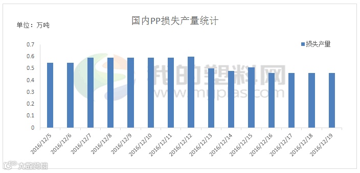 本周国内PP市场装置多稳定运行为主,周内荆门石化停车,市场局部地区货源供应略有缩减。我的塑料网统计,本周国内PP市场损失产能约在3.94万吨,较上周(4.05万吨)减少0.11万吨。本周国内PP石化企业暂无停车检修计划,我的塑料网预计本周国内PP市场货源供应量变化不大。