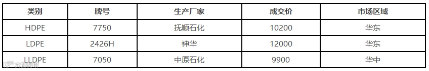 表1 12月27日我的塑料网PE市场成交价格(单位:元/吨)