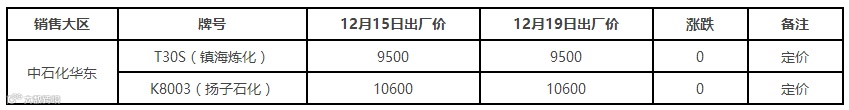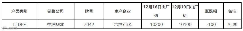 表4 12月20日国内PE出厂价格调整(单位:元/吨)