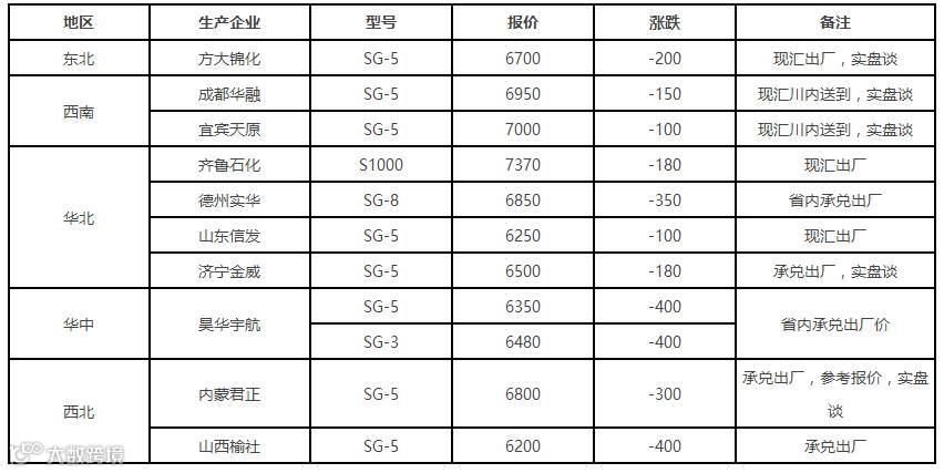PVC:今日国内PVC市场报价延续下跌。今日市场悲观气氛不减,部分贸易商对西北地区出厂价格报价破“6”,有库存者实盘按单商谈,甩货为主。PVC企业报价意义不大,多一单一谈。期货继续低开低走,下游制品企业接货意愿极差,市场成交极为冷清。国内电石法5型料主流价格在6200-6400元/吨,乙烯料主流价格在7000-7500元/吨。