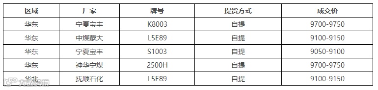表2 1月17日我的塑料网PP市场成交价格(单位:元/吨)