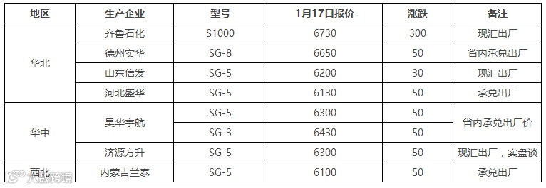 表6 1月17日国内PVC出厂价格调整(单位:元/吨)