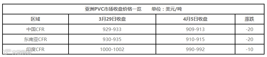 本周亚洲PVC市场气氛平淡,需求不佳,价格回落。CFR中国跌20美元/吨涨909-913美元/吨,CFR东南亚跌20美元/吨至910-915美元/吨,CFR印度跌10美元/吨至990-992美元/吨。虽然目前处于消费旺季,但由于供应量较高,中国市场价格不断回落影响,市场看淡气氛仍浓厚。