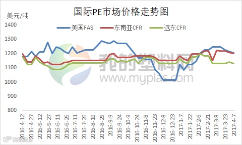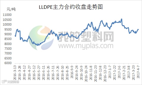 本周大商所连塑主力合约L1709本周开盘报9175元/吨,周五收盘报9485元/吨,最高报9610元/吨,最低至9160元/吨,周涨345元/吨或3.77%。成交量增加至99.2万手,持仓减少至15.4万手。