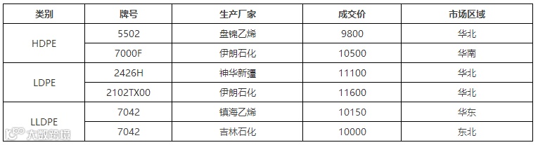 PE:我的塑料网预计明日国内PE市场以稳为主。LLDPE主流市场价格在9950-10200元/吨,LDPE主流市场价格在11450-12100元/吨,HDPE膜主流市场价格在10100-10600元/吨。