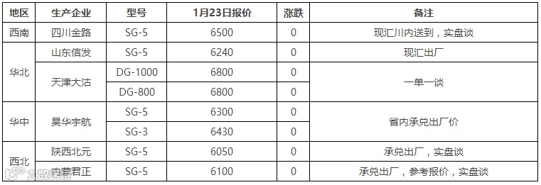 表6 1月24日国内PVC出厂价格调整(单位:元/吨)