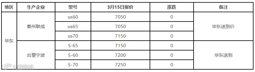表6 3月15日国内PVC出厂价格调整(单位:元/吨)