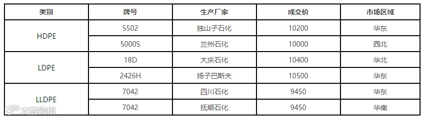 今日塑料市场止跌企稳,部分试探报高。塑料各品种期货高开高走为市场带来支撑,加上石化装置密集检修期来临,部分大区限量销售,使得个别货源紧俏,商家出货较积极,终端用户多采购低价货源为主。