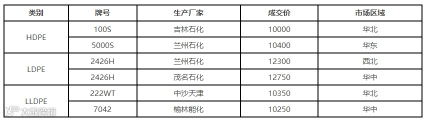 表1 12月13日我的塑料网PE市场成交价格(单位:元/吨)