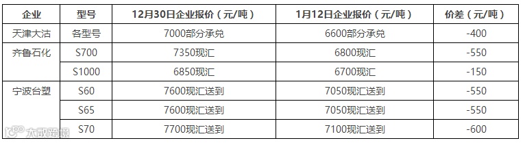 2017年伊始,乙烯法PVC生产企业价格出现下跌,个别牌号跌幅达600元/吨。其主要原因是前期电石法价格的迅速下滑,加之外盘价格走低,进入1月份以后,乙烯法PVC企业新订单跟进情况并不理想,价格有下行压力。