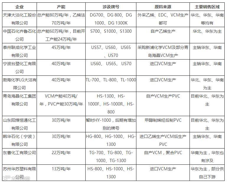 目前国内乙烯法PVC企业共计10家。其中高端料以渤海化学LG大沽、宁波台塑为代表,低端以天津大沽、齐鲁石化等为代表。今年青岛海晶成功开启后,与阳煤恒通一样成为物美价廉的中坚力量。另外广州东曹再次开车之后仍然维持华南销售为主。