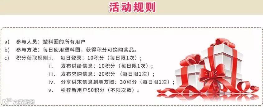 塑料圈通讯录积分可以换现金券啦!每日登录:10积分(每日1次);发布供给:10积分(每日1次);发布求购:20 积分(每日1次);分享朋友圈:30积分(每日1次);引荐新用户:50积分(不限次数)。积分可以直接兑换现金红包,豪礼多多,不要错过。