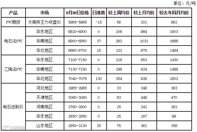华南地区PVC市场货源依然紧缺,下游需求稳定,交投不温不火,成交多为10月份到货货源。普通5型电石料主流成交价6900-6940元/吨自提,君正/亿利5型报6920元/吨自提,天业5型报6950元/吨。乙烯料价格稳定,主流7120-7250元/吨自提,大沽800报7150元/吨自提,大沽700报7150元/吨自提,大沽1300型报7190元/吨自提。