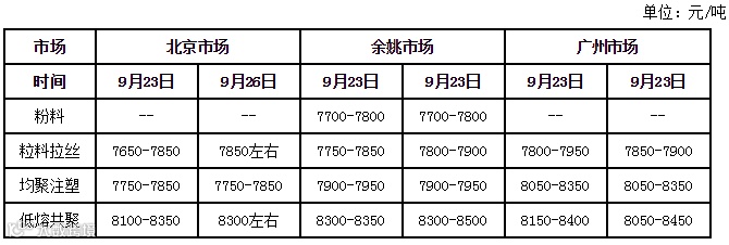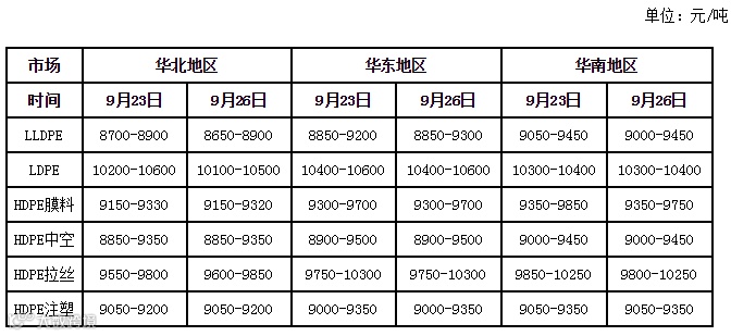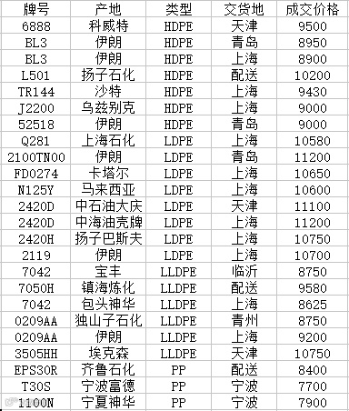 我的塑料网今日部分主流牌号成交价格一览表