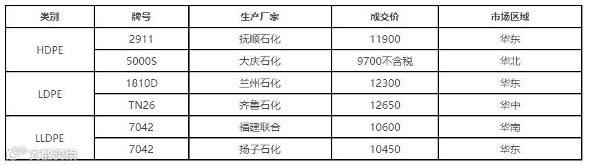 表1 12月21日我的塑料网PE市场成交价格(单位:元/吨)