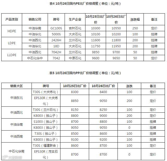 PE:今日国内PE市场价格盘整为主,中石化出厂价格较平稳,中油华南低压部分牌号涨幅在200元/吨,高压和线性小幅整理为主。早间中石油部分牌号出厂价上调,期货震荡下行,月底市场部分货紧,商家谨慎追高,下游谨慎观望,刚需采购,少数现货市场成交火热。