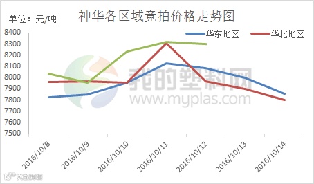 进入10月份,PP价格急速冲高之后,呈现走弱之势。以华东地区竞拍为例,月初竞拍成交价格在7825元/吨,最高8130元/吨,最低7955元/吨,10月14日竞拍成交价在7855元/吨。