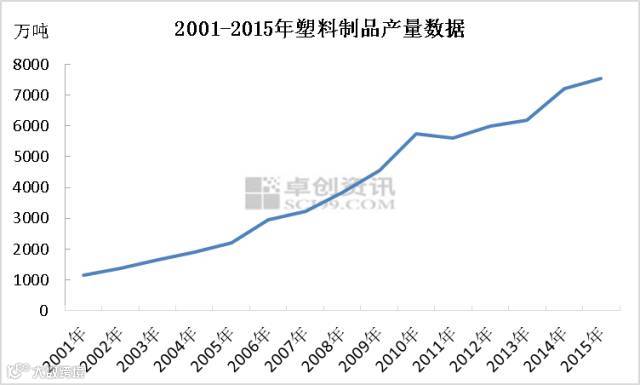 从2001年至2015年我国塑料制品总量数据来看,增长趋势明显,尽管近几年行业外围环境同比欠佳,但总量依然保持稳健增长,根据国家统计局数据显示,2016年1-4月,我国塑料制品行业累计完成产量2285.3万吨,同比增长4.9%。4月当月,我国塑料制品行业完成产量636.6万吨,同比增长5.1%。销售方面:1-4月,我国塑料制品行业累计完成出口交货值702.2亿元,同比增长2.0%,累计产销率达97.5%。4月当月,我国塑料制品行业累计完成出口交货值190.9亿元,同比增长1.0%,产销率达97.9%。效益方面,1-4月,塑料制品生产企业累计主营业务收入6634.5亿元,同比增长5.6%;实现利润总额393.3亿元,同比增长13.0%。由此来看,虽然业者频频发表行业运行欠佳,但总量数据来看,塑料行业表现依然活跃。