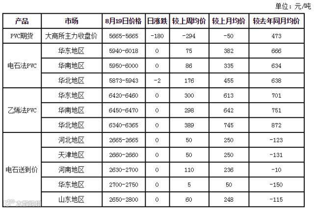 国内主要市场PVC价格一览