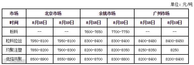 中油华南、中油华北、中油西南、中油西北部分出厂价调涨,对市场的成本支撑有所增强。终端需求没有明显改善,对市场形成较强制约。预计,受石化成本支撑,近期市场延续窄幅盘整走势。以华东市场为例,余姚市场拉丝主流价格在8250-8450元/吨。建议业者加强对石化销售政策、下游开工情况及PP期货的关注力度。