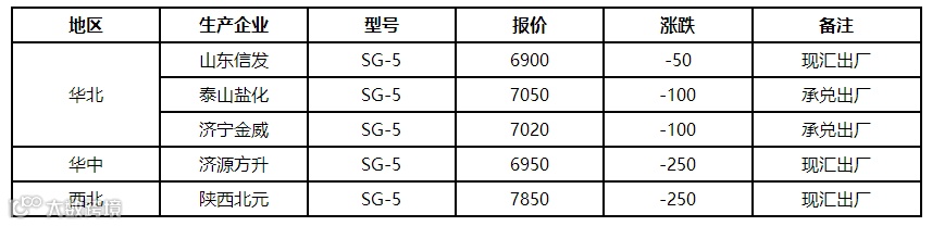 表6 12月14日国内PVC出厂价格调整(单位:元/吨)