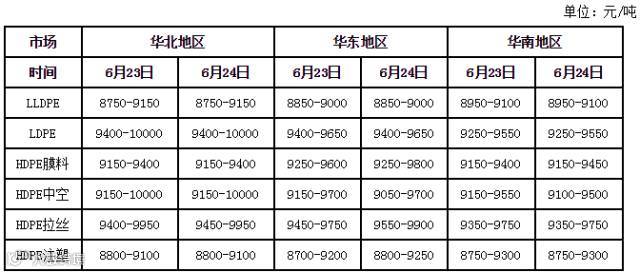 今日PE出厂价格一览表