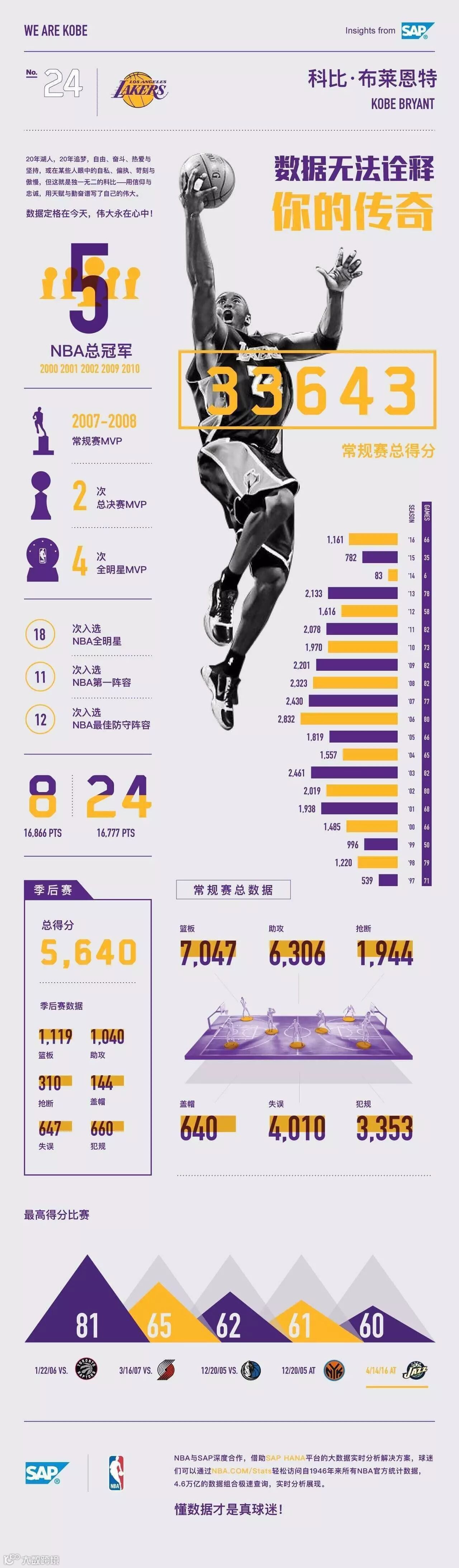 再见!科比(一图回眸科比的经典数据)