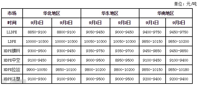 9月1日亚洲乙烯市场稳定,CFR东北亚收1194.5-1196.5美元/吨,CFR东南亚收1069.5-1071.5美元/吨。