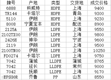 我的塑料网今日部分主流牌号成交价格一览表