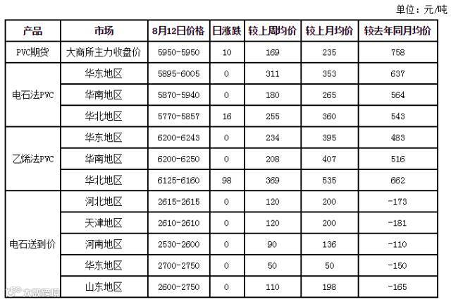 国内主要地区PVC市场价格一览表
