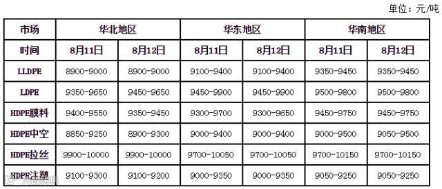 主要地区PE市场价格一览表